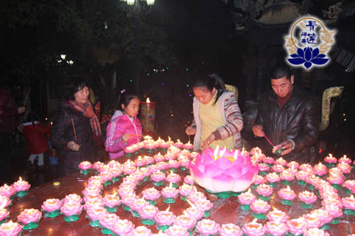 2012年1月30日,农历壬辰年正月初八,青莲禅寺举行了传灯大法会,法会由我寺住持达慧法师主法,与会善信跟随法师诚诵献灯祈愿文,之后一灯燃起,灯灯相传,僧众手捧莲花灯,寄语“平安吉祥、合家安康”,祈祷“世界和平、国泰民安”。法会现场在灯光的照耀下,祥和庄重。