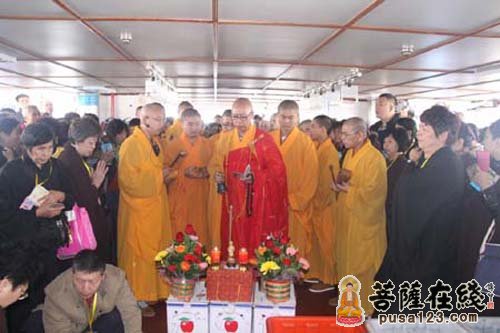 2013年12月8日上午8时,应福建厦门金鸡亭普光寺地藏共修班全体成员恭请,普光寺方丈传建法师带领常住众法师,到厦门第一码头举行海上放生活动。