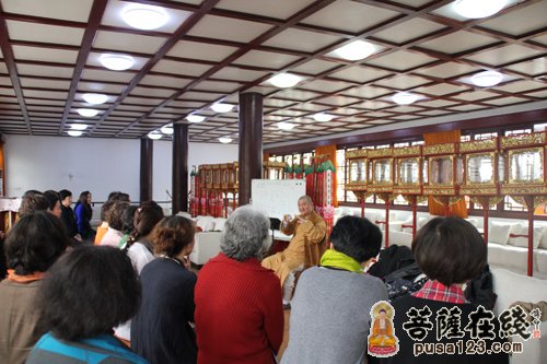 2014年3月29日下午1:30,上海龙华古寺监院中观法师为本寺梵音合唱团的全体成员开示。法师首先赞叹大家能够发心来寺院里学习梵音,相信大家一定可以让梵音唱响,传播四方。法师举《药师经》中的一句话即:“善调意乐”来为大家展开开示。“善调意乐”的义理是:最善于调自己的心态和意境,心意的安乐,要有无尽的感恩,感恩三宝无始以来的加持、帮助、给予、摄受!要有无尽的感恩,感恩南无药师琉璃光如来无量菩萨行、无量善巧方便、无量广大愿。