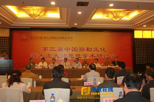 2014年9月20日上午,第三届中国弥勒文化暨太虚大师思想学术研讨会开幕式在浙江奉化举行。奉化市委副书记卓厚佳、市人大常委会副主任王海国、副市长何黎斌、市政协副主席俞伦,浙江省佛教协会会长、奉化雪窦寺方丈怡藏法师,台湾佛光大学校长杨朝祥,浙江大学董平教授等,来自海峡两岸及美、韩、马来西亚等国的40多位专家学者和宗教界人士围绕“雪窦名山”这一宗旨,以太虚大师及其人间佛教思想、雪窦山与“弥勒信仰”、人间佛教思想在台湾的发展等为主要议题展开研讨。