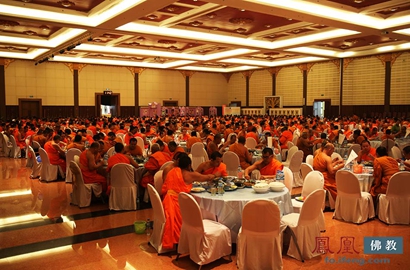 9月23日上午,中国佛教界重走海上丝路巡礼团在泰国首都曼谷摩诃朱拉隆功佛教大学举办了万众瞩目的供千僧斋大法会。应供僧人来自9个国家共计1116人,此次千僧斋是摩诃朱拉隆功佛教大学首次在大礼堂举办大规模的供僧法会,千僧坐满150桌。法会特别为中国汉传佛教僧团安排了捻香诵经仪轨。广东省佛教协会常务副会长兼秘书长、广州市佛教协会会长、广州大佛寺住持耀智大和尚,摩诃朱拉隆功佛教大学校长梵智长老在供千僧法会上致辞,中泰两位宗教大师共同回顾了海上丝绸上的文化交往和中泰佛教友谊,一致认为此次供千僧活动意义重大,是新丝路新时期中泰佛教交流的重大进展。