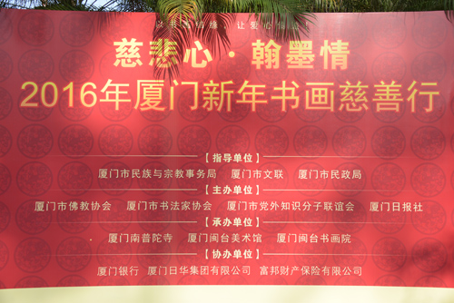 本次活动由厦门市佛教协会、厦门市书法家协会、厦门日报社、厦门市党外知识分子联谊会主办,厦门南普陀寺、厦门闽台美术馆、厦门闽台书画院承办,厦门日华集团有限公司、厦门银行、富邦财产保险有限公司为活动提供了大力支持。