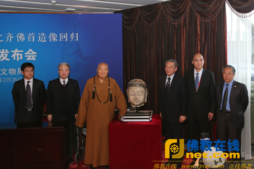 星云大师表示,佛教文物是人类重要的文化资产,属于全人类共有,应该让佛首回归原处。他发愿要让佛像“金身合璧”。2014年底双方正式签署捐赠协议。2016年2月21日,“星云大师捐赠北齐佛首造像回归启程典礼”在台湾佛光山藏经楼隆重举行,近三千位两岸人士聚集主殿,恭送“金身合璧”的佛像,并共同见证了两岸合力促成珍贵文物回归的又一段佳话。