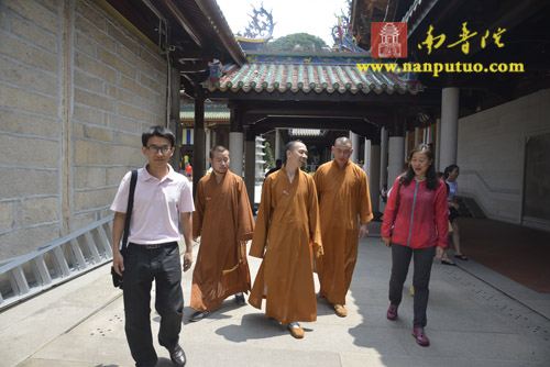 2016年6月7日上午10时,辽宁省抚顺市民族事务委员会主任、抚顺市宗教事务局局长张玉伟一行在市民宗局办公室陈彬煌的陪同下到南普陀寺参观访问。受方丈则悟大和尚委托,都监兼知客德煌法师等热情接待了来宾,陪同来宾参观了天王殿、大雄宝殿、大悲殿、藏经阁等重要堂口,并详细为来宾介绍了寺院历史、建筑等方面情况。