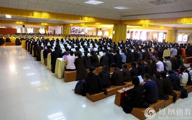 受印顺大和尚委托,弘法寺一如法师领众主法,经堂内上千四众弟子虔诚稽首礼佛,梵音齐唱“华严字母”,诵读大乘经典《大方广佛华严经》。千人同诵《大方广佛华严经》,如入因陀罗网境界,积聚福慧资粮;增长智慧,发大乘心,同赴佛法讲座,游华藏之世界,入毗卢之性海,作真实之功德,种无上之良因。