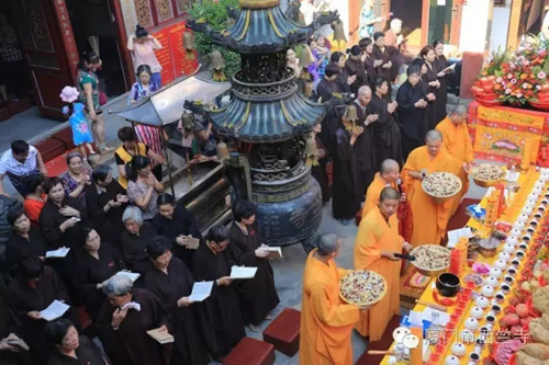是日辰时,阳光普照,龙天欢喜,香花灯烛果诸供一应俱全,众善信迎着东升的太阳在一片大悲咒声中拉开斋天的帷幕,开涌法师遍洒甘露法水,四众弟子庄重肃穆,怀着崇敬感恩的心庄严道场,祈愿物阜民丰、天下太平、法轮常转、正法久住!