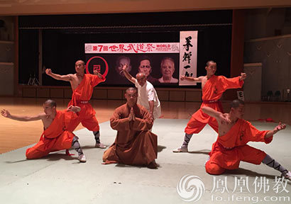 7月31日上午,南少林寺禅武团前往“冲绳传统古武道保存会”,拜访会长仲本政傅。仲本政傅1988年来福建依地术拳第四代传人陈依九学艺,1995年带队前来参加过中国(莆田)南少林国际武术大赛。7月31日下午,禅武团一行前往冲绳县立武道馆,出席了四年一届的“冲绳国际刚柔流空手道连盟世界武道祭”演武大会。空性大和尚在开幕式上作了“友好、传承、合作”的主题发言,南少林寺禅武团在演武大会开幕式上大展身手,赢来阵阵掌声。