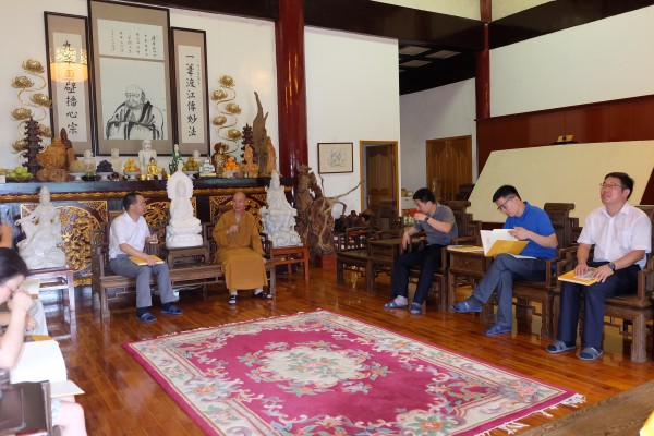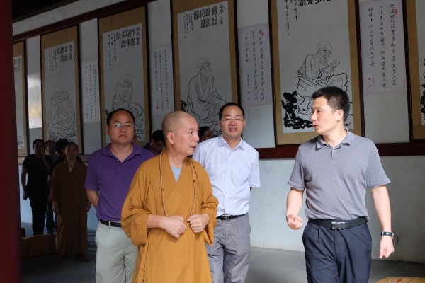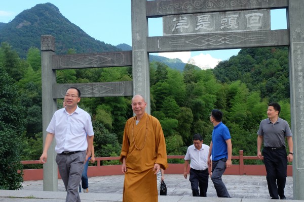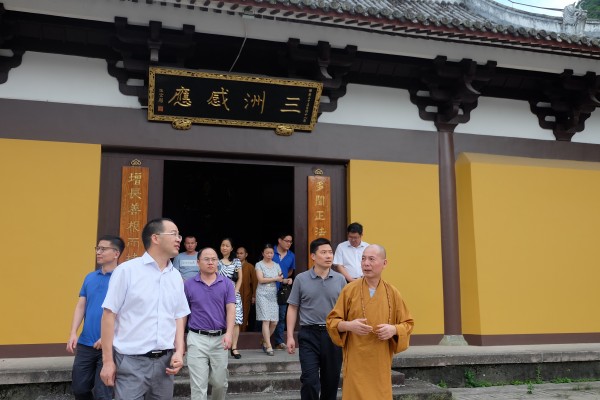 2016年8月4日下午2时,乐清市李立飞副市长一行在市民宗局季德强副局长的陪同下来雁荡山能仁寺考察调研,受到雁荡山能仁寺住持了法法师的热情接待。